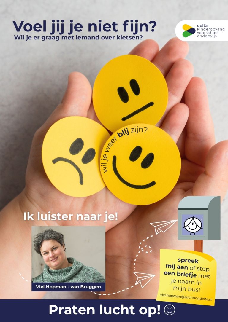 Loopt u op school ergens tegenaan? Bespreek het zo snel mogelijk. Kunt u - om wat voor reden dan ook - niet terecht bij de betrokken persoon, bij de leerkracht van uw kind of bij de directie, neem dan contact op het onze vertrouwenspersoon: juf Vivi.